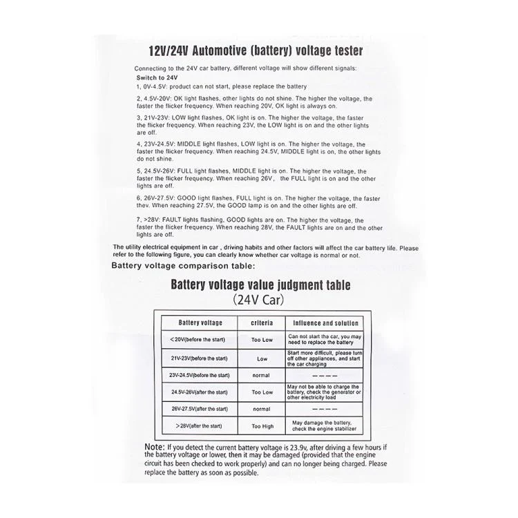 Connecting to the 24V car battery, different voltage will show different signals: Switch to 24V