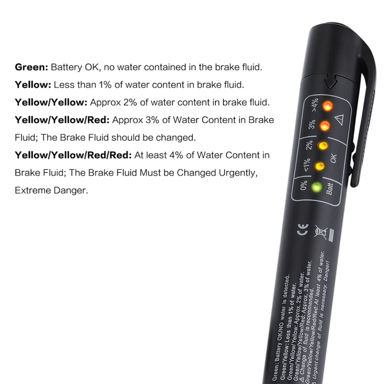 5. Yellow/Yellow/Red/Red: at least 4% of Water Content in Brake Fluid. The Brake Fluid Must be Changed Urgently, Extreme Danger.