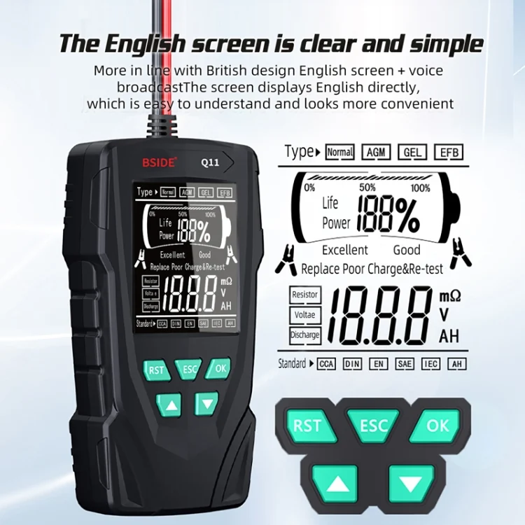 BSIDE Q11 Car Battery Detector 12V/24V Battery Life Capacity Internal Resistance Tester