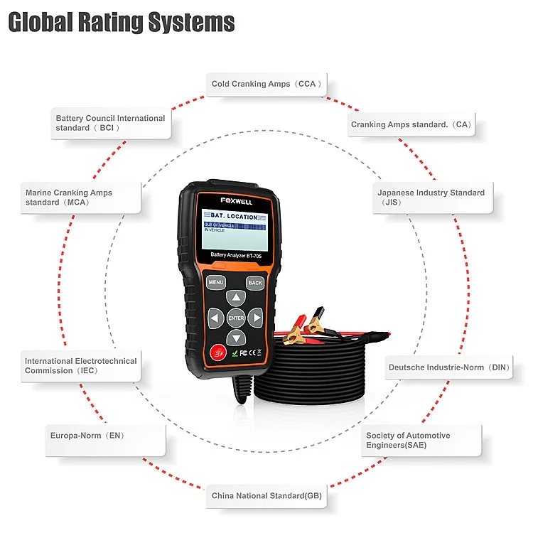 6. Tests multiple rating systems – CCA, BCI, CA, MCA, JIS, DIN, IEC, EN, SAE, GB