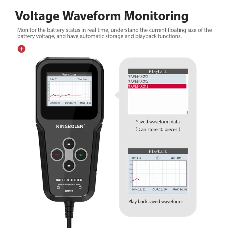 6. Real-time monitoring of battery status, to understand the current floating size of battery voltage, with automatic storage and playback functions.