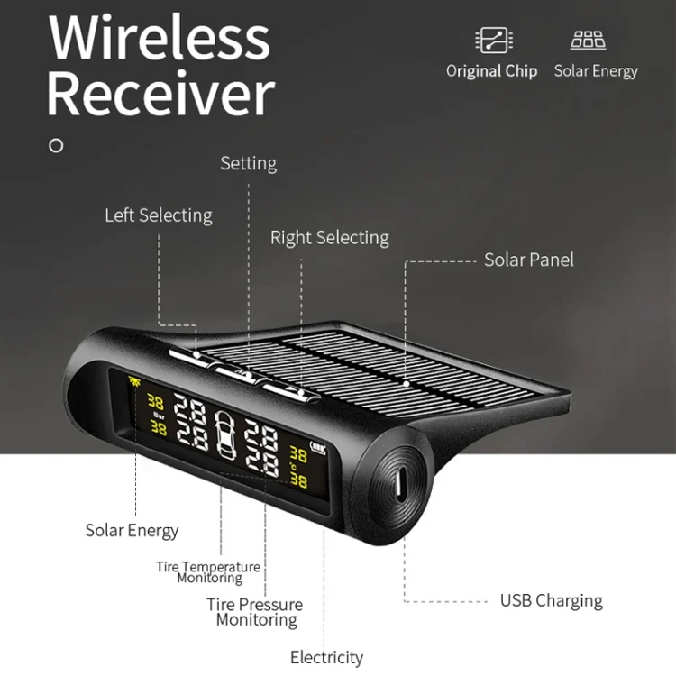 YB-Q0248 Universal Car Wireless Solar External Tire Pressure Monitor Detector