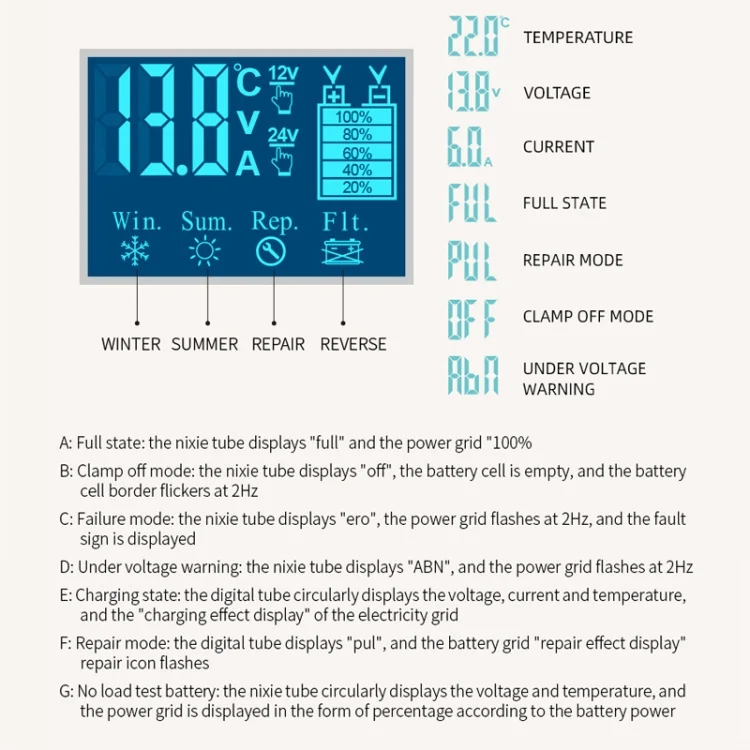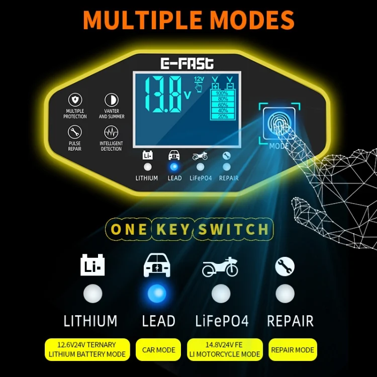 13. Intelligent CPU control, with 4 modes, choose the correct charging mode according to your battery type