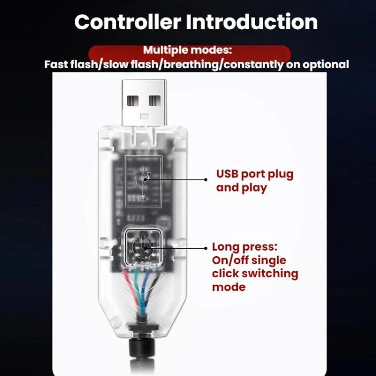8. Plug-and-play USB port: long press to turn on/off, single press to switch modes.