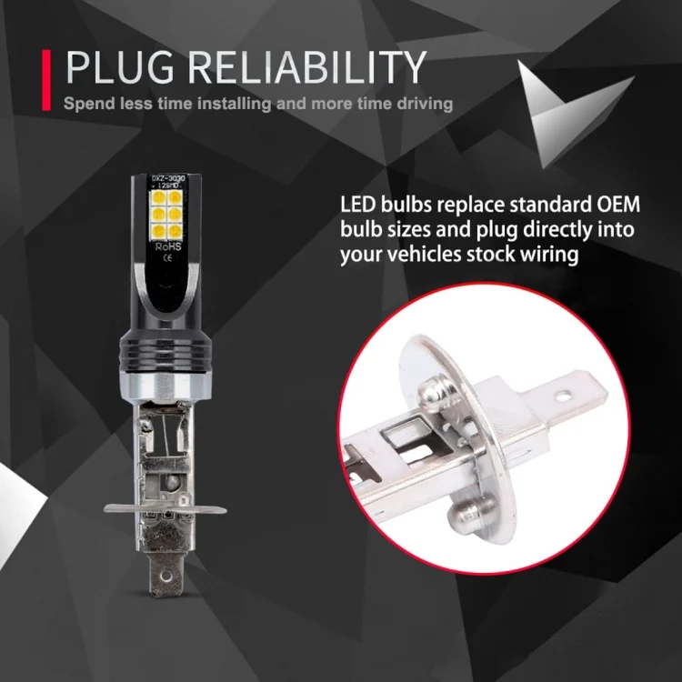 2 PCS H1 DC12V-24V / 12W / 3000K / 800LM 12LEDs SMD-3030 Car LED Fog Light