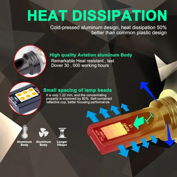 2 PCS H3 DC12V-24V / 12W / 3000K / 800LM 12LEDs SMD-3030 Car LED Fog Light