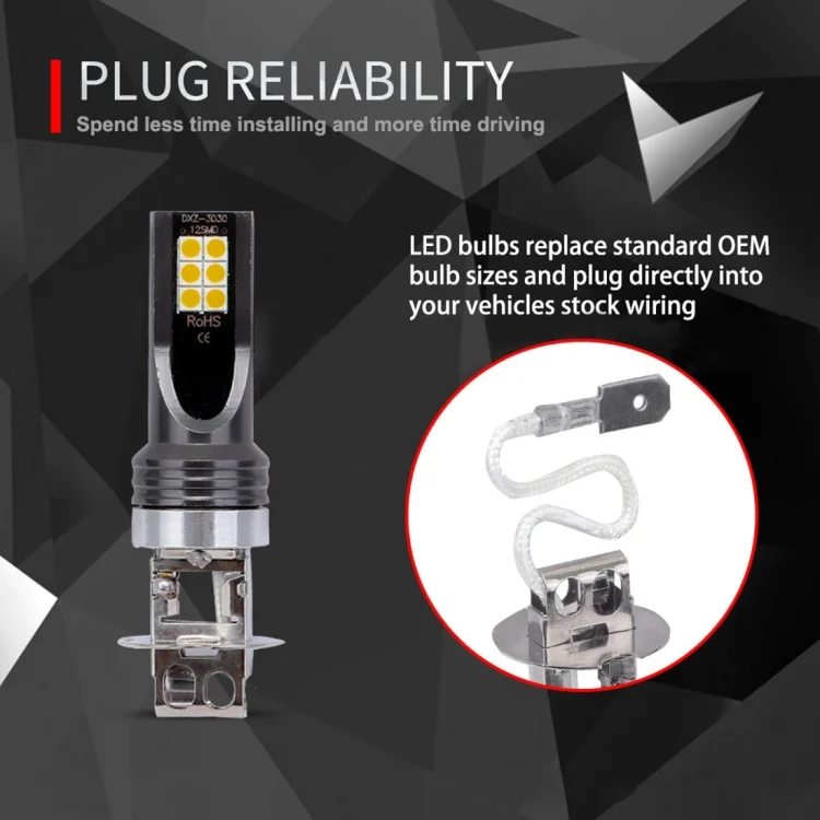 2 PCS H3 DC12V-24V / 12W / 3000K / 800LM 12LEDs SMD-3030 Car LED Fog Light