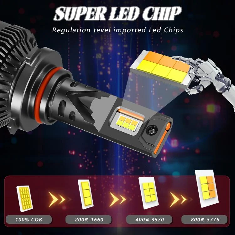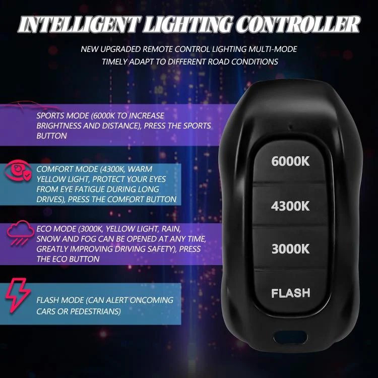 2pcs/Pack 60W 8000LM 6000K Three Color Remote Control Car LED Headlight Bulb