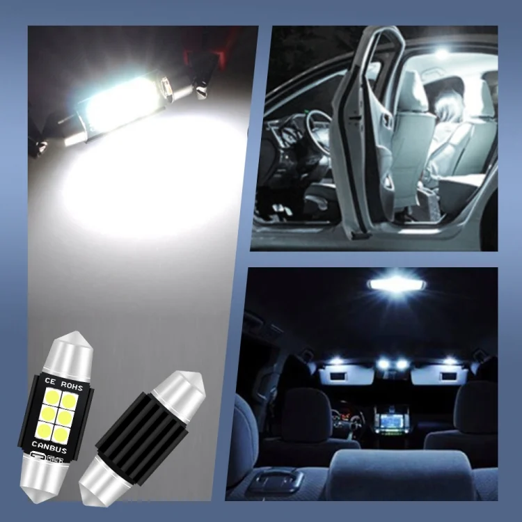 2 PCS 36mm DC12V-24V 3W 6000K 660LM 6LEDs SMD-3030 Car Reading Lamp / License Plate Light