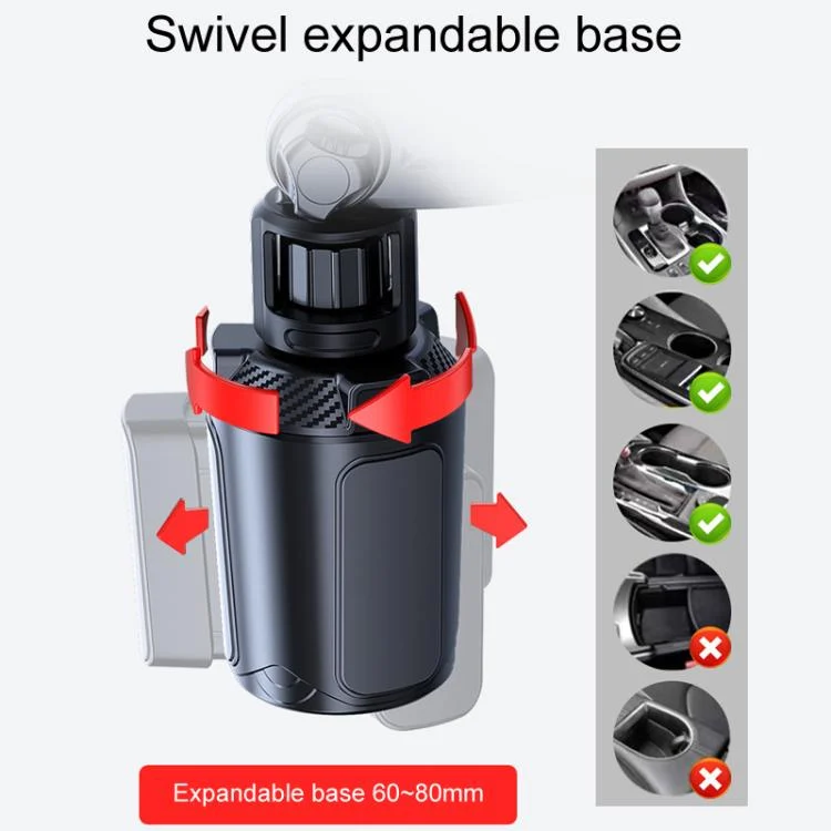 7. Twist the top and bottom in the opposite direction at the same time, you can expand or contract the base, to adapt to different cars with cup slots