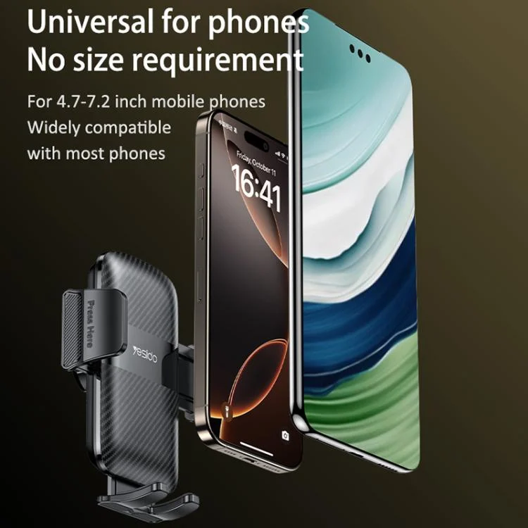 d. Phone holder features a push-to-pop design with wraparound arms to securely hold your phone and prevent it from shaking or falling. The retractable footrest adjusts the center of gravity to suit the size of your phone, accommodating phones from 4.7 to 7.2 inches.