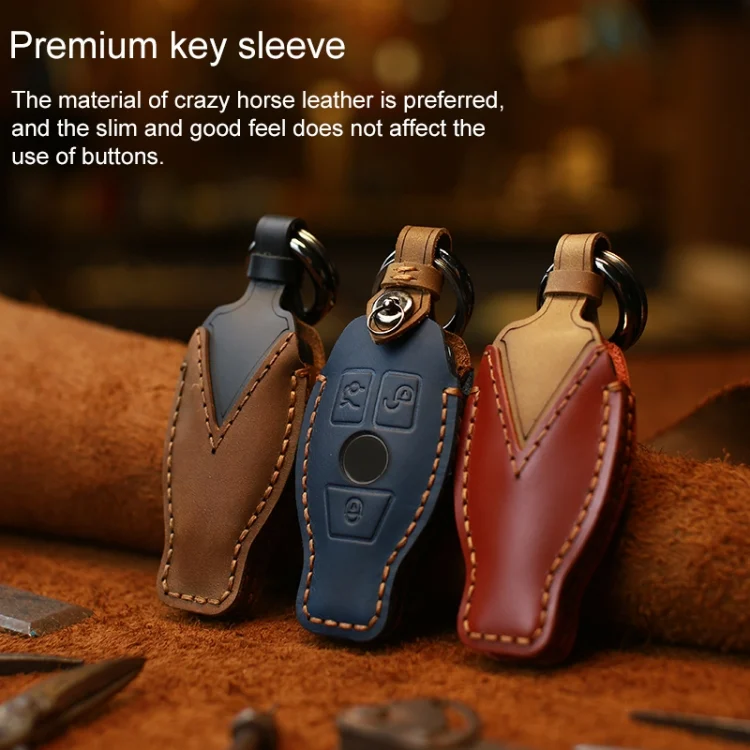 For Mercedes-Benz Old Style Car Cowhide Leather Key Protective Cover Key Case