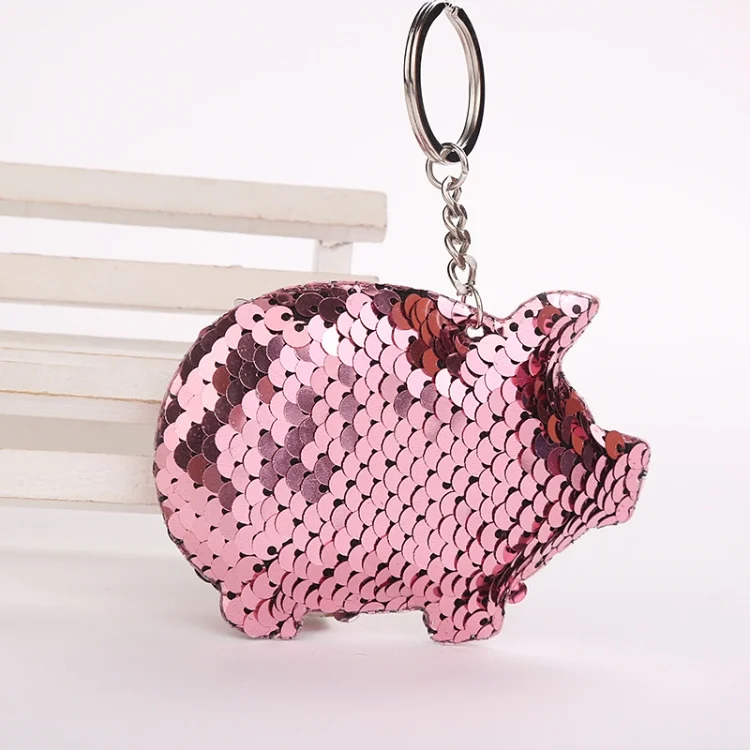2PCS Cute Chaveiro Pig Keychain Glitter Pompom Sequins Key Chain Gifts for Women Llaveros Mujer Car Bag Accessories Key Ring