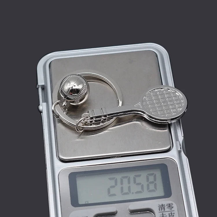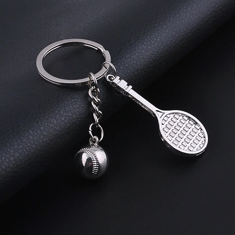 2pcs Simulation Tennis Racket Metal Key Chain Small Gift