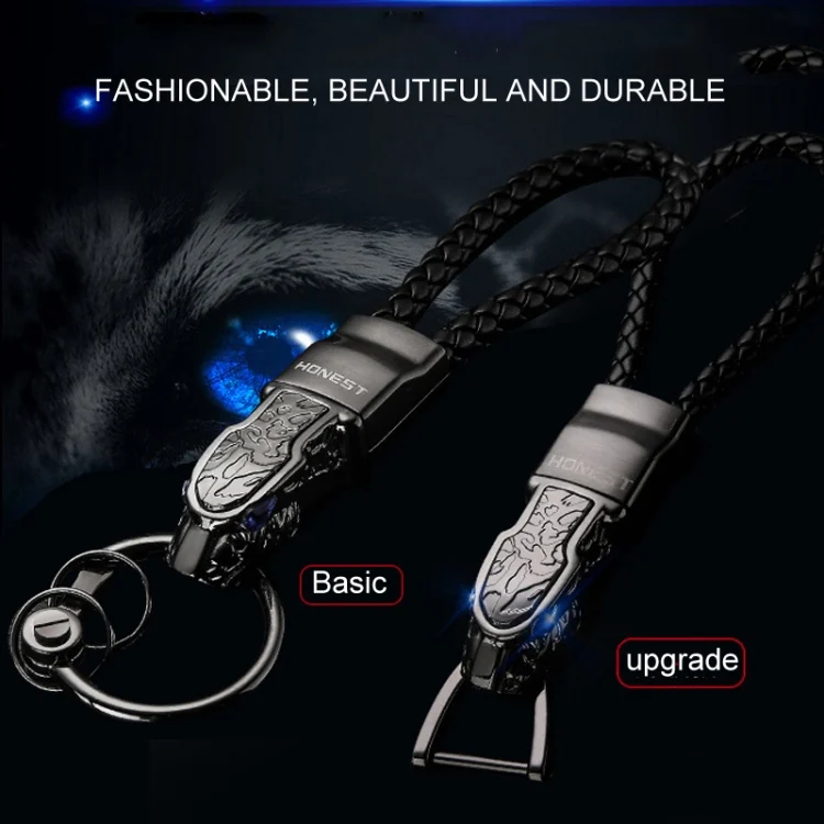 HONEST Diamond Encrusted Car Keychain Leather Cord Leopard Metal Keychain Pendant