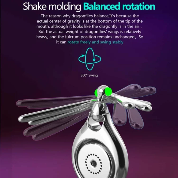 6. The product has an original strong magnetic structure. The dragonfly can be firmly attached to the base under any bumps or sudden brakes, and the round steel ball structure greatly reduces the friction between the contact points, making it more flexible to rotate and swing