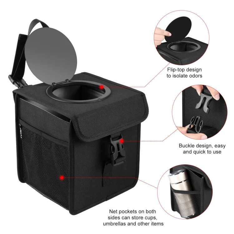 2. Convenient To Use: You can mount the car trash bin anywhere in your vehicle with hooks to prevent it from falling. Honeycomb board support, stable structure, it is simple to assemble, and this compact design keeps garbage from leaking out.