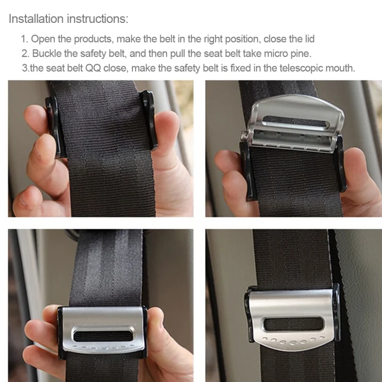 3. This car seat belt buckle is made of plastic material, designed with open close buckle, convenient for you to adjust seat belt”s length.