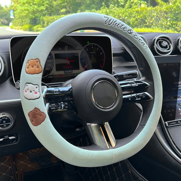 Round Style Car Universal Cartoon Pattern Plush Warm Anti-skid Steering Wheel Cover, Diameter: 38cm
