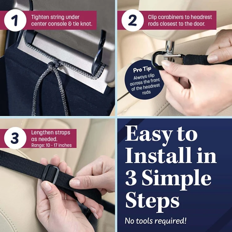 6. Easy to install: no need to drill holes, no need to stick, equipped with 2 reliable safety hooks, so that the entire storage net can be simply hung on the headrest rod in 1 minute, saving time and effort