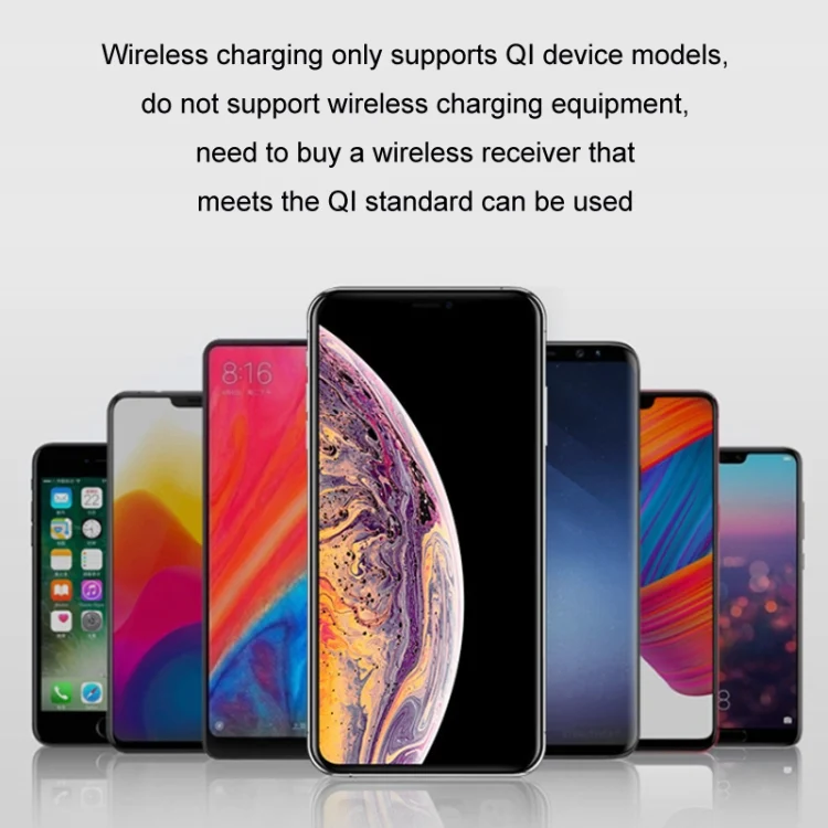 5. Wireless charging only supports QI device models. For devices that do not support wireless charging, you need to purchase a wireless receiver that meets the QI standard to use it.