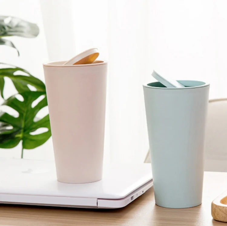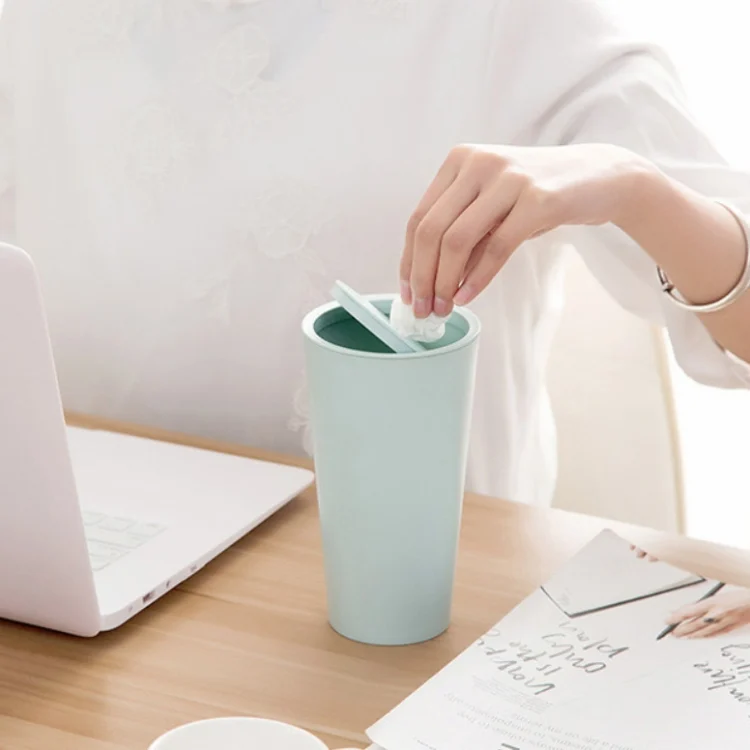 Desktop Plastic Rocker Cover Car Storage Round Barrel Car Tissue Trash Can