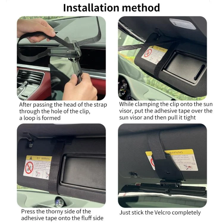 1. Quick and tool-free installation, suitable for most small vehicle sun visors (CD panel area).