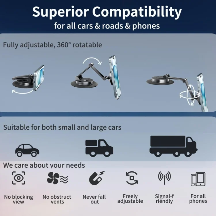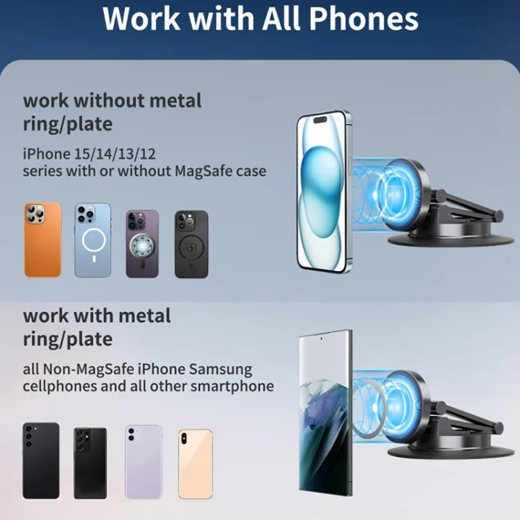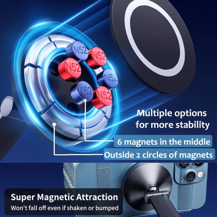 360 Rotating Car Magnetic Cell Phone Holder Magsafe Metal Car Folding Navigation Stand