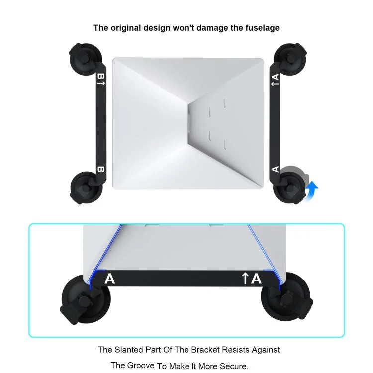 1. The original design will not damage the fuselage, and the tilted part of the bracket conflicts with the groove of the device, making it more stable