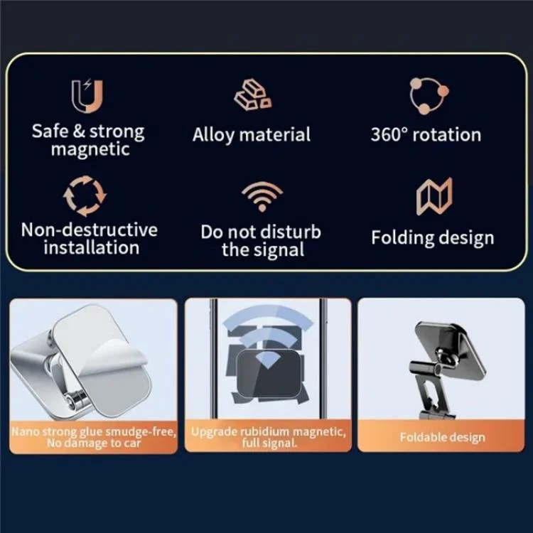 JMARY MH-82 Car Dashboard Zinc Alloy Foldable Magnetic Phone Holder