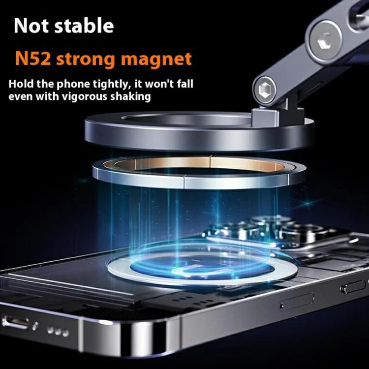 3.N52 Strong Magnetic Support:Equipped with dual-ring N52 neodymium magnets, providing robust magnetic support to firmly secure your device. The aluminum alloy structure combines stylish design with durability.