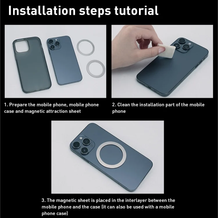 2. It is directly suitable for iPhone 12 and above phones, and can be used with the complimentary magnetic ring for other phones.