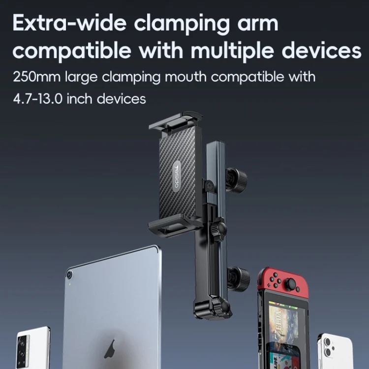 5. The left and right clamping arms and panel silicone complement each other, effectively protecting the tablet or mobile phone used, and the clamping is more secure