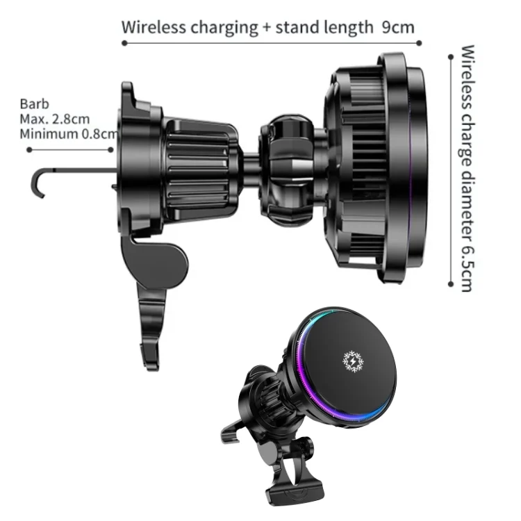 15W Car Wireless Charger Semiconductor Heat Dissipation Mobile Phone Holder RGB Light