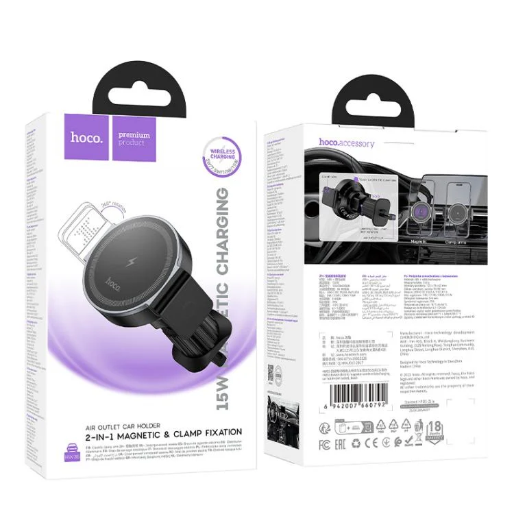 hoco HW35 Power Air Outlet Electric MagSafe Magnetic Wireless Fast Charging Car Holder -Qty: 5 Units