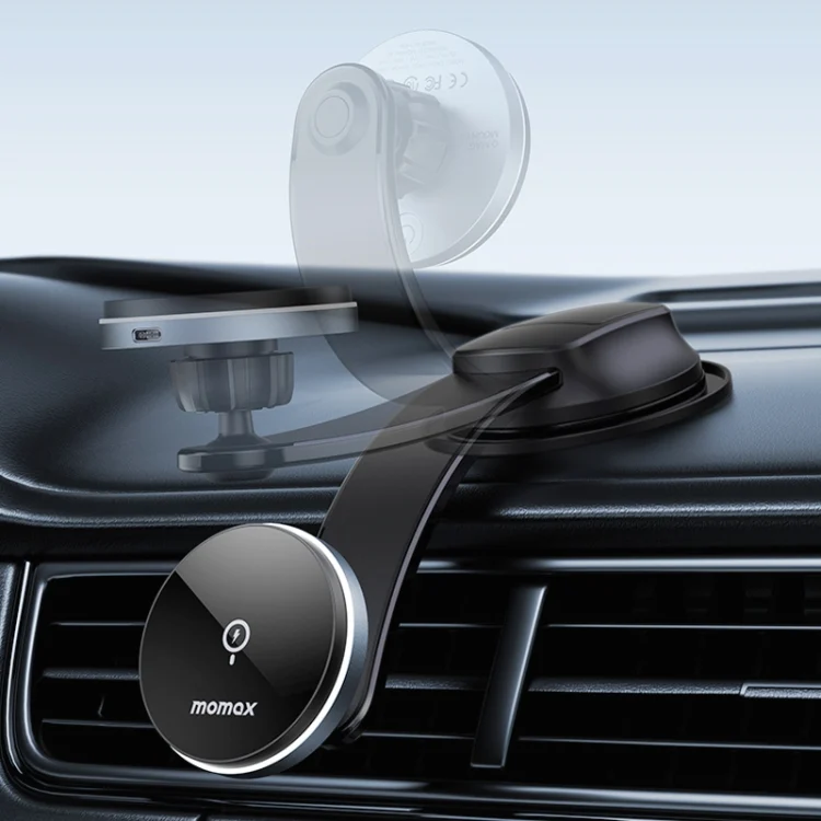 MOMAX CM25B Magnetic Wireless Charger Car Suction Cup Phone Holder
