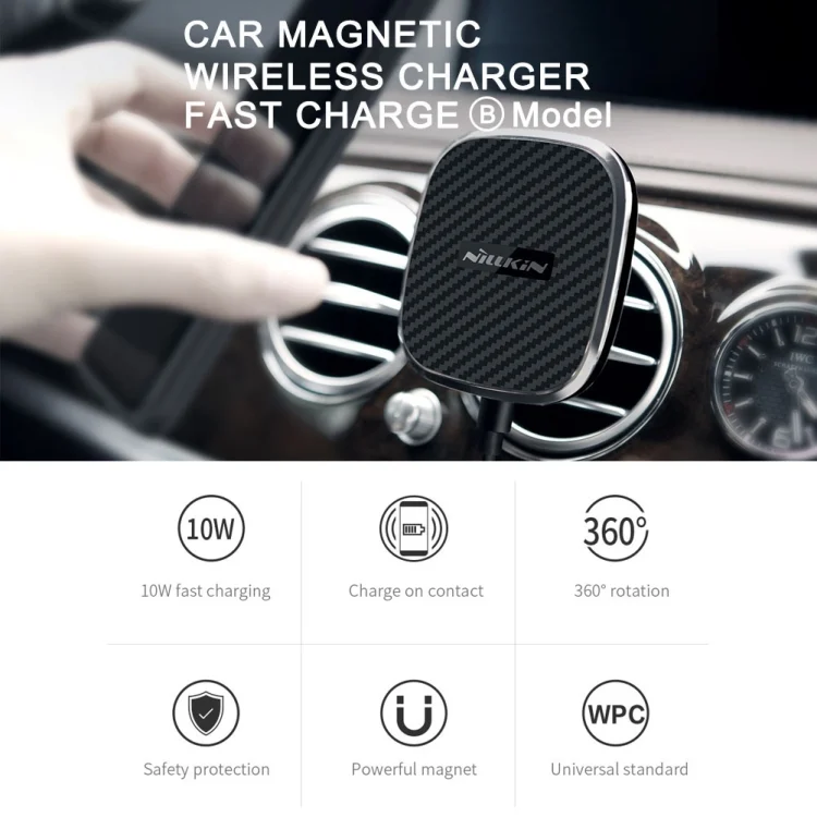 NILLKIN MC027 Car Air Outlet Vent Mount Clamp Holder 10W Fast Charging Qi Magnetic Wireless Charger