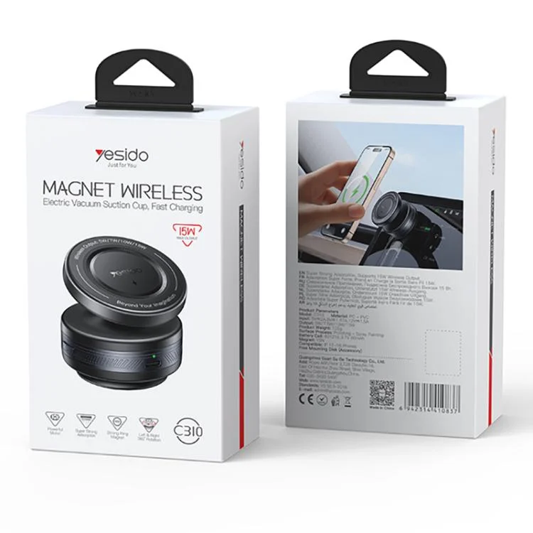 Yesido C310 15W Wireless Charging Vacuum Suction Cup MagSafe Car Holder with 360 Degree Rotating Base