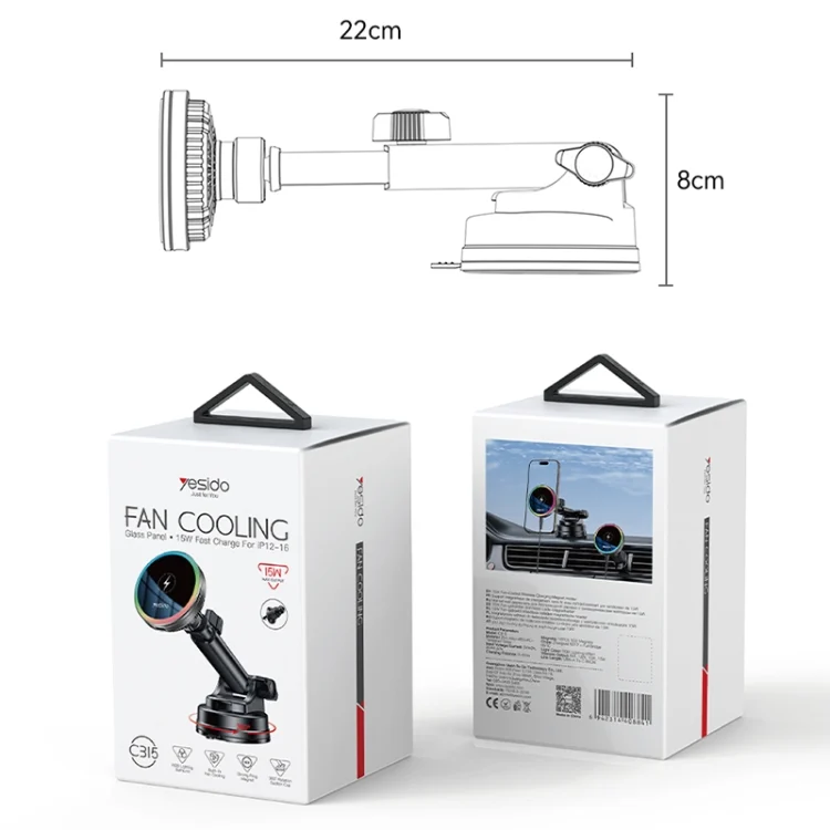 Yesido C315 15W Suction Cup Air Vent Car Wireless Charging Holder with RGB Lighting