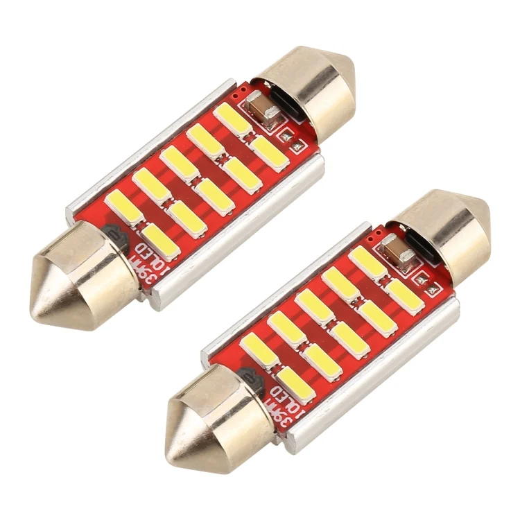 2 PCS DC 12V 2W 41MM 4014 Bicuspid Port No Decoding Car Dome Lamp LED Reading Light with 10 LED Lights