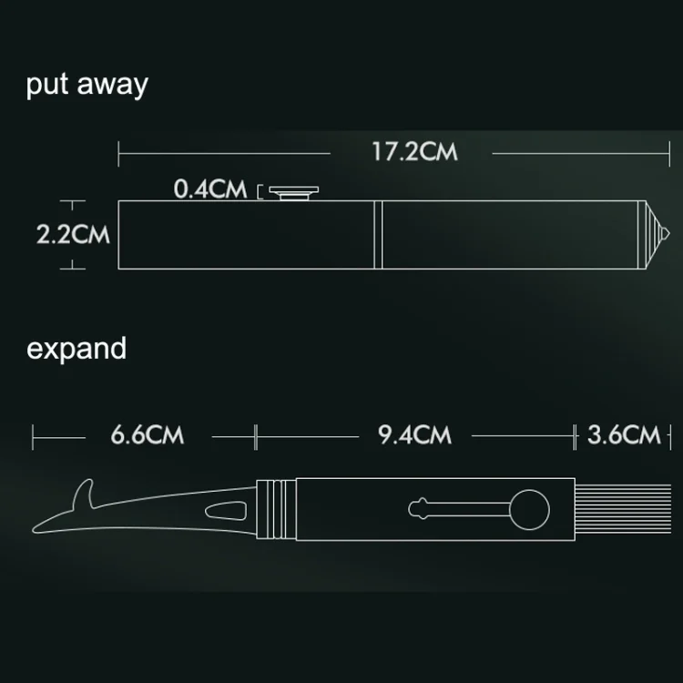 12. Material: ABS+PC alloy13. Dimensions: 2.2 x 2.6 x 17.2cm14. Net weight: 65g15. Gross weight: 76g
