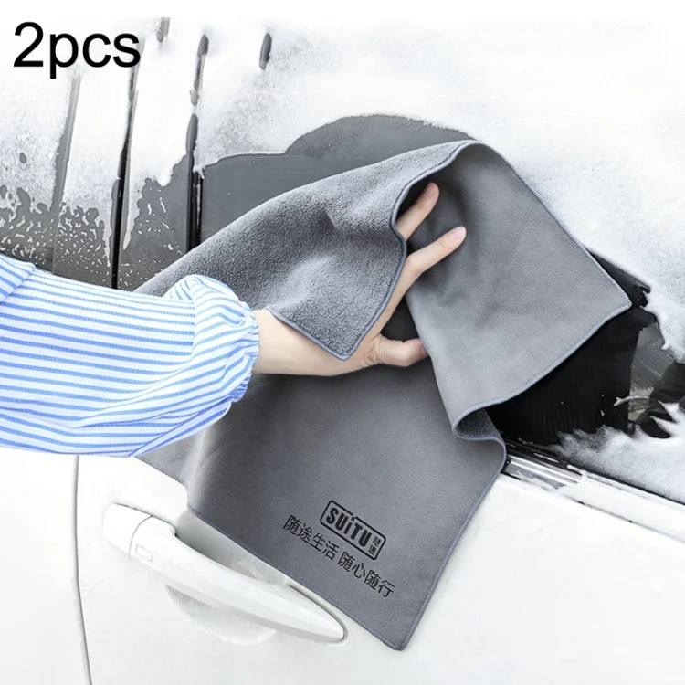 SUITU ST-9000 2pcs Double Suede Car Cleaning Towel Dry Washing Cloth, Size: