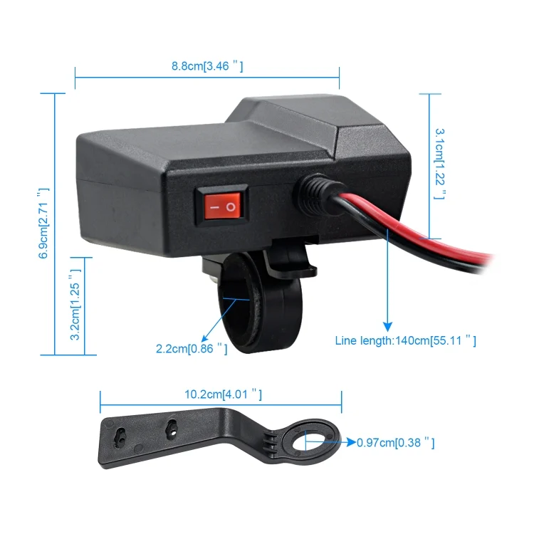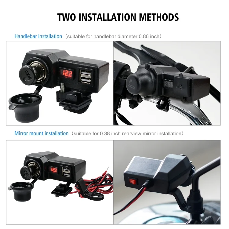 CS-1072B1 Motorcycle Dual USB Charger + Voltmeter with Cigarette Lighter & Cigarette Butts