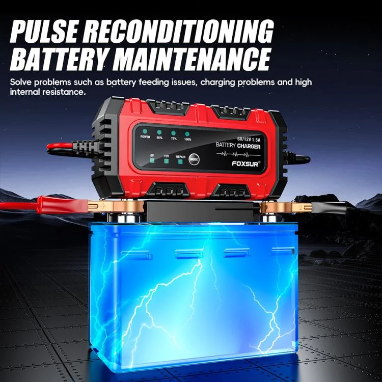 FOXSUR Smart 6V/12V 1.5A Battery Charger 4AH-30AH Lead Acid Battery Maintainer For Motorcycle/Car/ATV