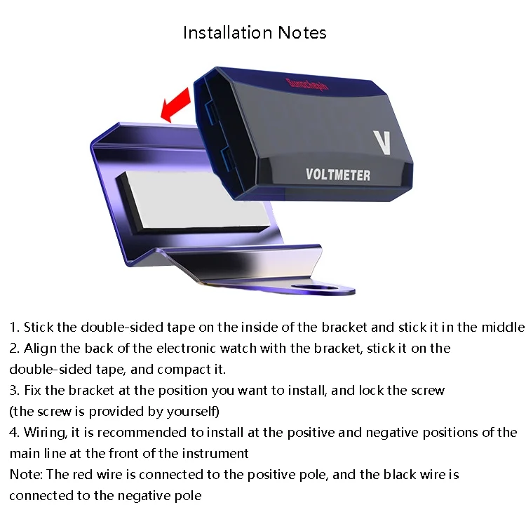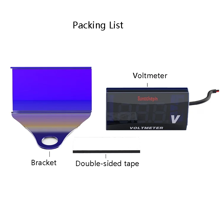 7. Packing list: voltmeter x1, bracket x1, double-sided tape x1