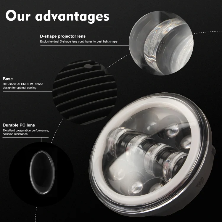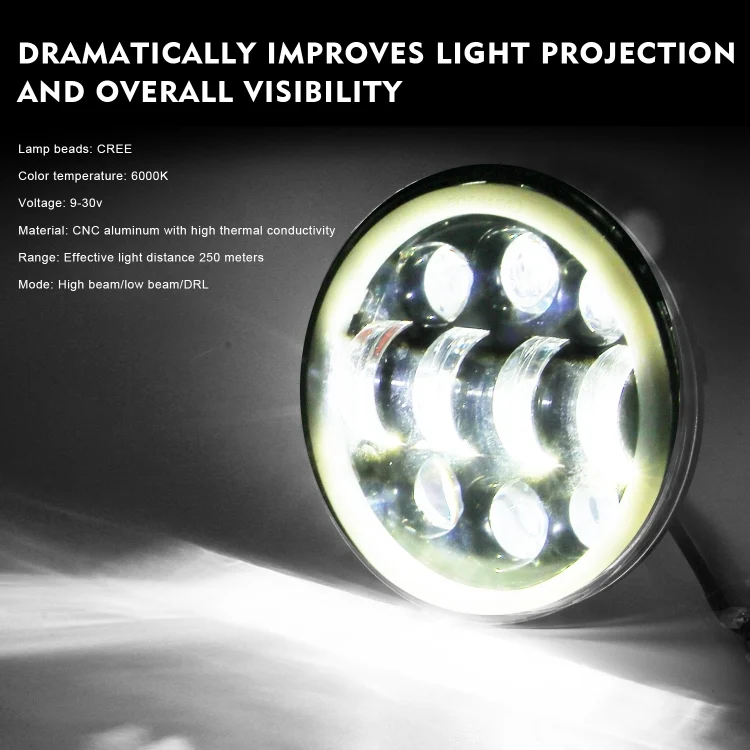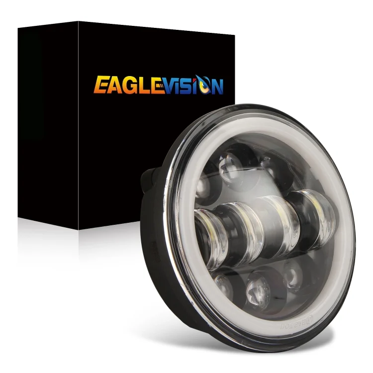 EagleVision DC9-30V 35W 6000K 4000LM 5.75 inch Round Motorcycle 6LEDs Headlight with Angel Eye for Harley-Davidson