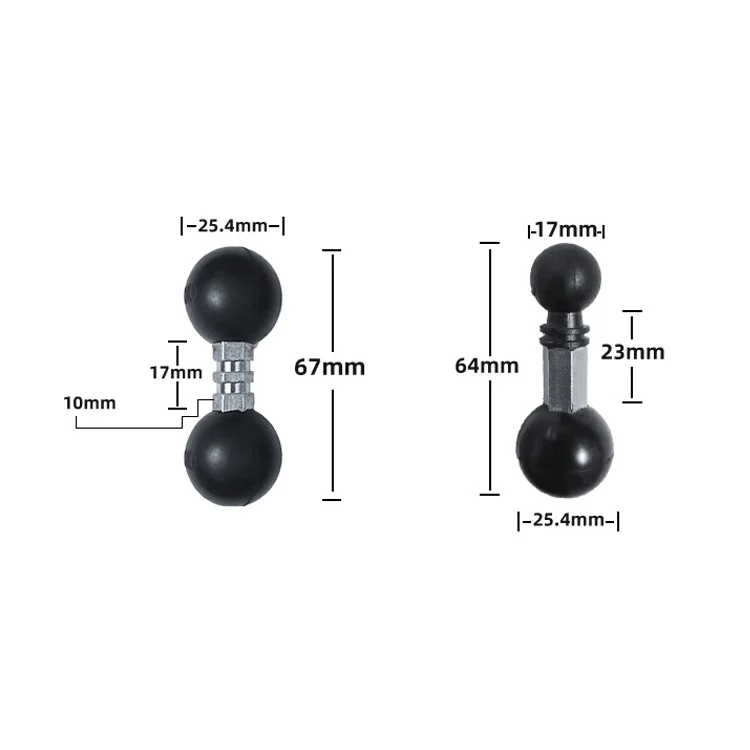 3. Size: 25.4-25.4mm ball head is about 6.7 cm long, 5.4-17mm ball head is about 6.4 cm long