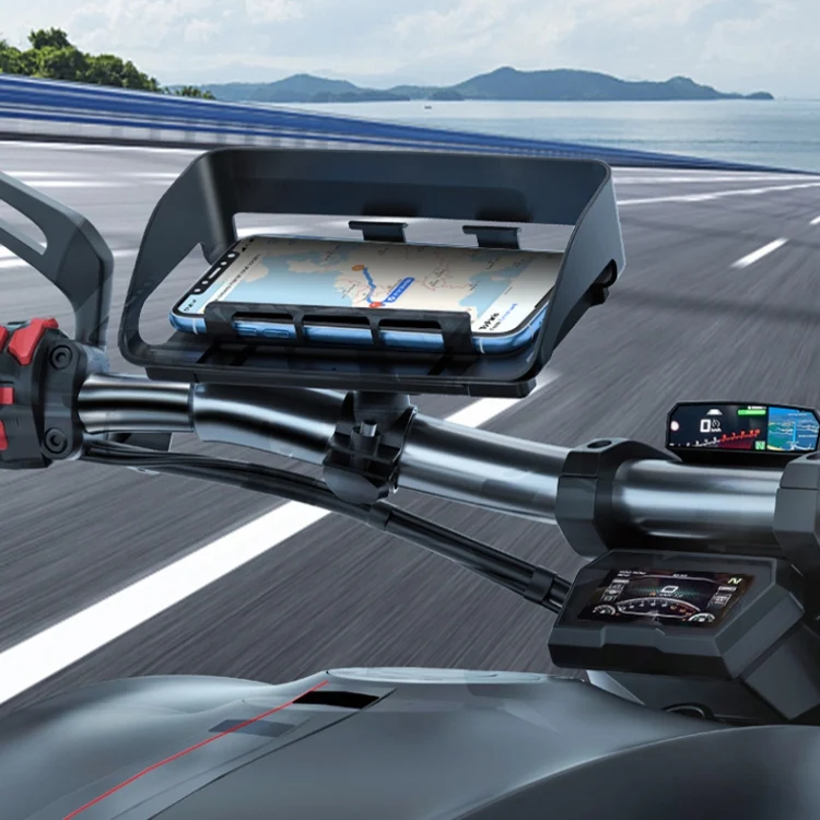 Rotatable Bicycle and Motorcycle Anti-shake Fixed Mobile Phone Holder with Sun Visor