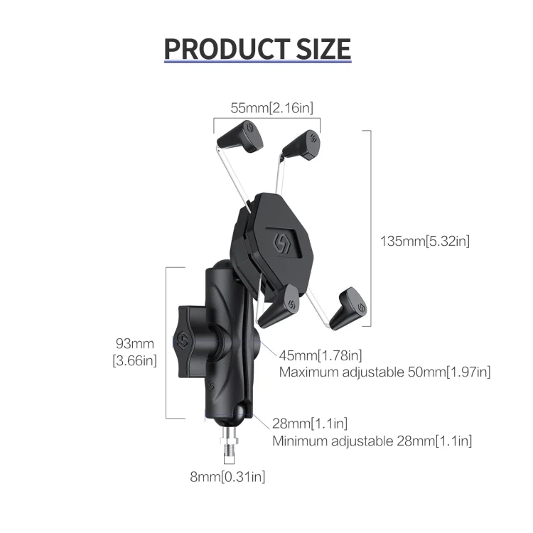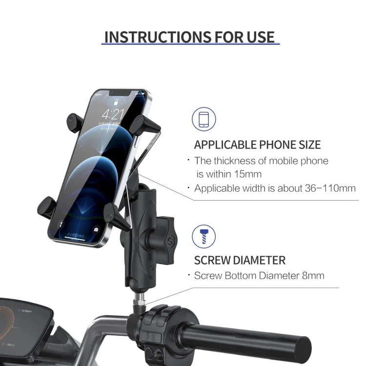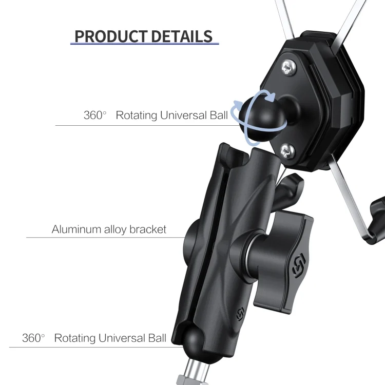 ZH-1558C1 Motorcycle M8 Ball Joint X-shape Aluminum Alloy Phone Holder
