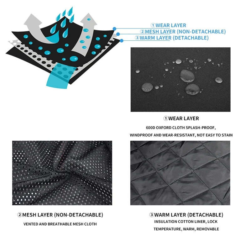 1. 600D oxford cloth, water repellent, windproof and abrasion resistant, not easy to stain